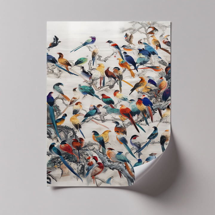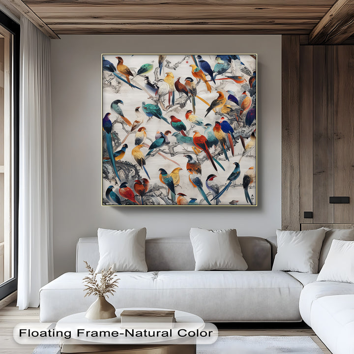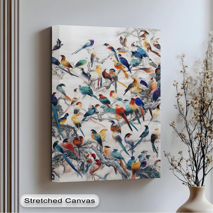 Symphony of Colors – Exotic Birds Gathering Canvas Wall Art | Large Canvas