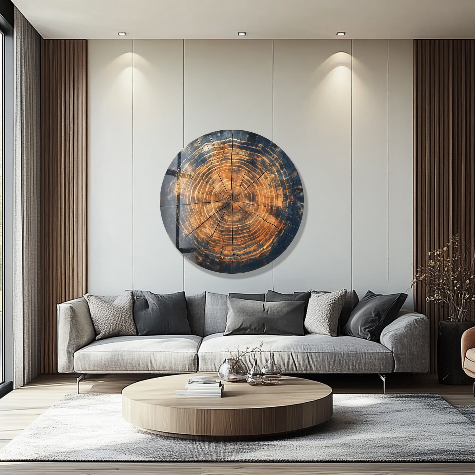 Bring the essence of nature indoors with the Timber Echo – Natural Wood Grain Round Glass Wall Art. This mesmerizing piece captures the intricate growth rings of a tree trunk, immortalizing the timeless beauty of natural wood through the refined clarity of glass. Warm amber and deep brown tones radiate from the center, symbolizing strength, age, and balance — making it the perfect harmony of organic texture and modern sophistication.