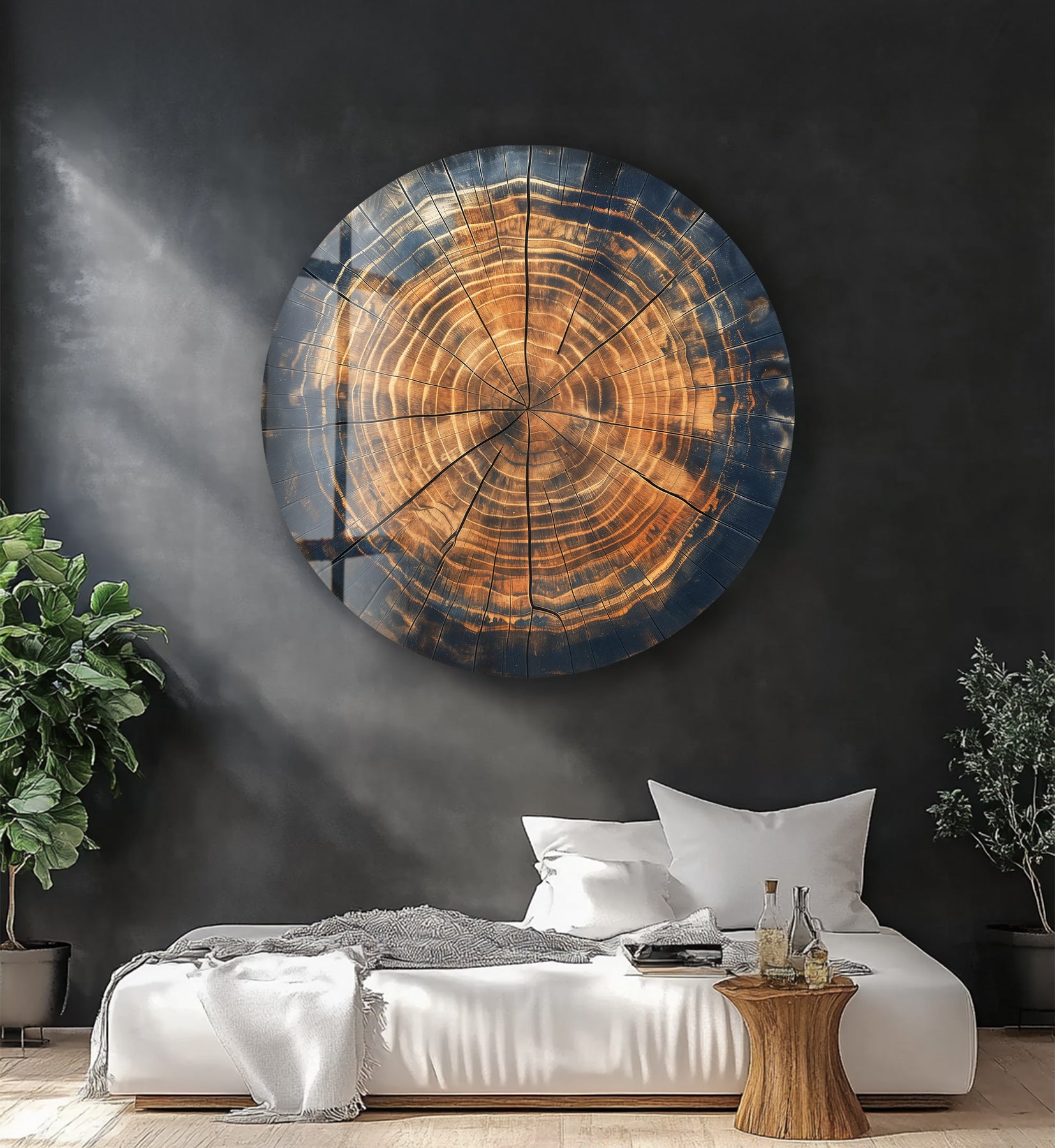 Timber Echo – Natural Wood Grain Round Glass Wall Art