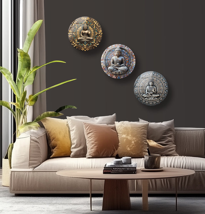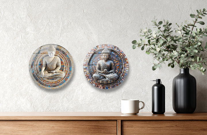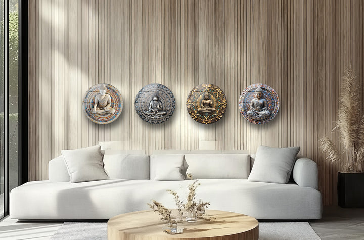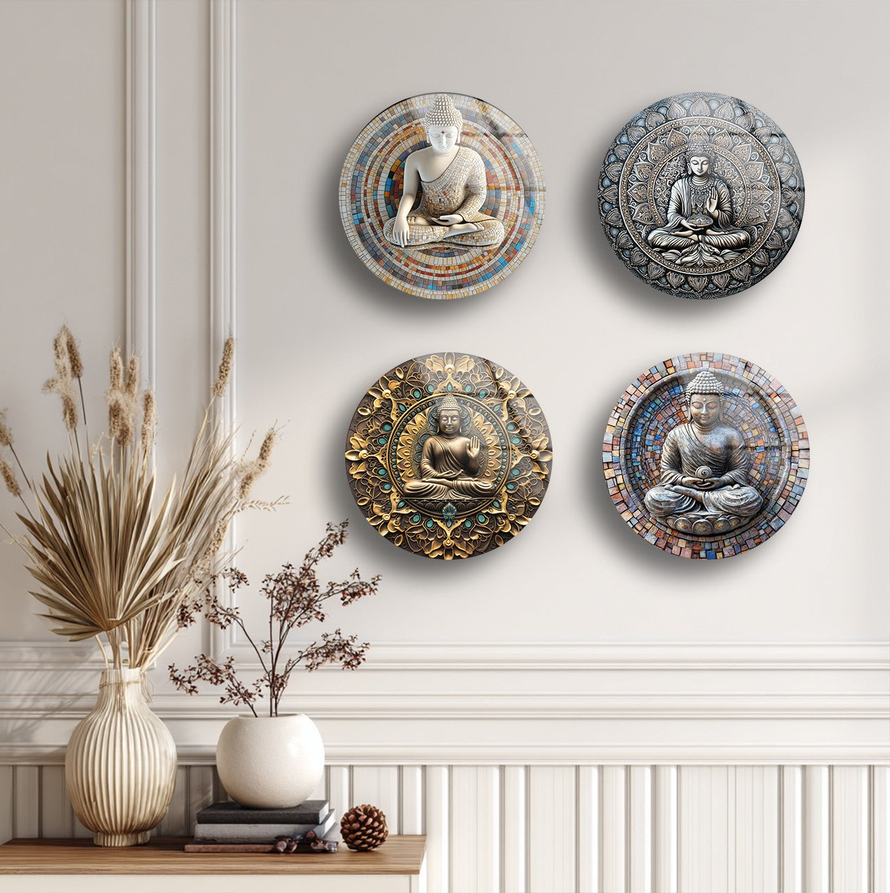 Tranquil Enlightenment – Buddha Mandala Round Glass Wall Art Set