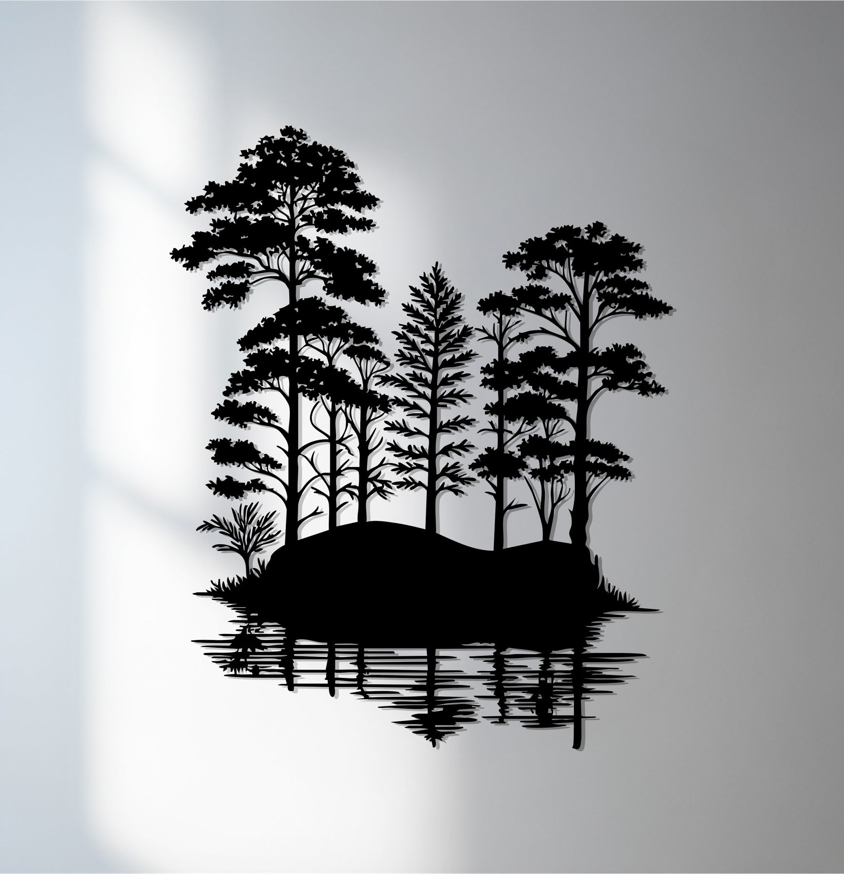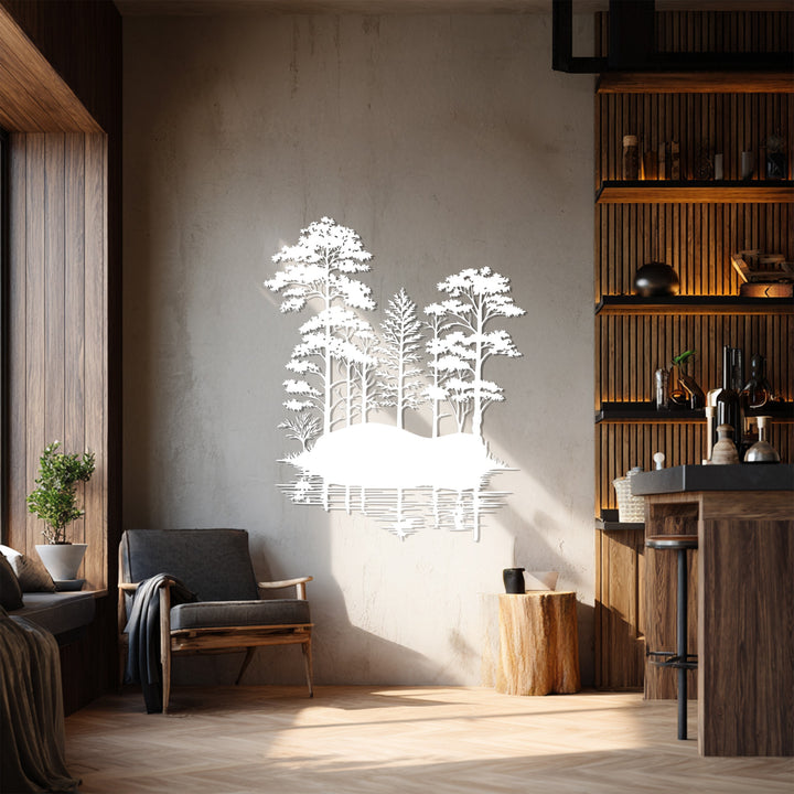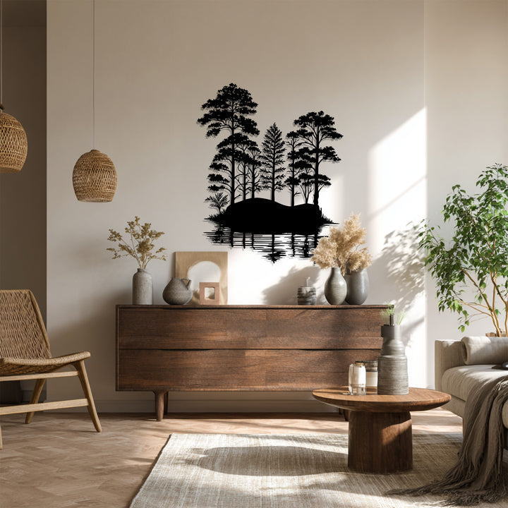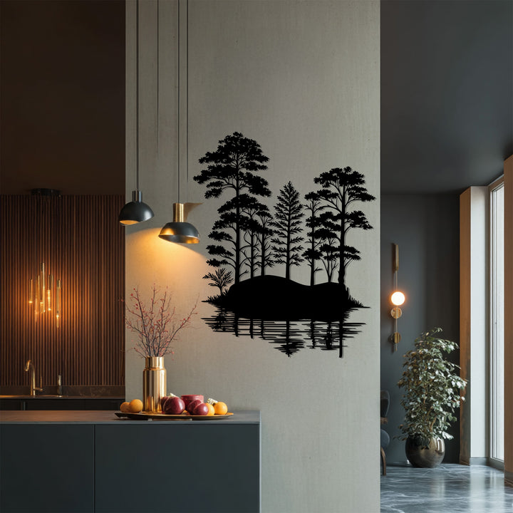 Immerse your home in the peaceful beauty of nature with the Tranquil Forest Reflection Metal Wall Art. This stunning piece captures the serene essence of a quiet woodland mirrored on calm waters, creating a perfect harmony of symmetry and stillness. With its lifelike tree silhouettes and detailed water reflections, it evokes a sense of balance and calm that transforms any wall into a scenic escape.