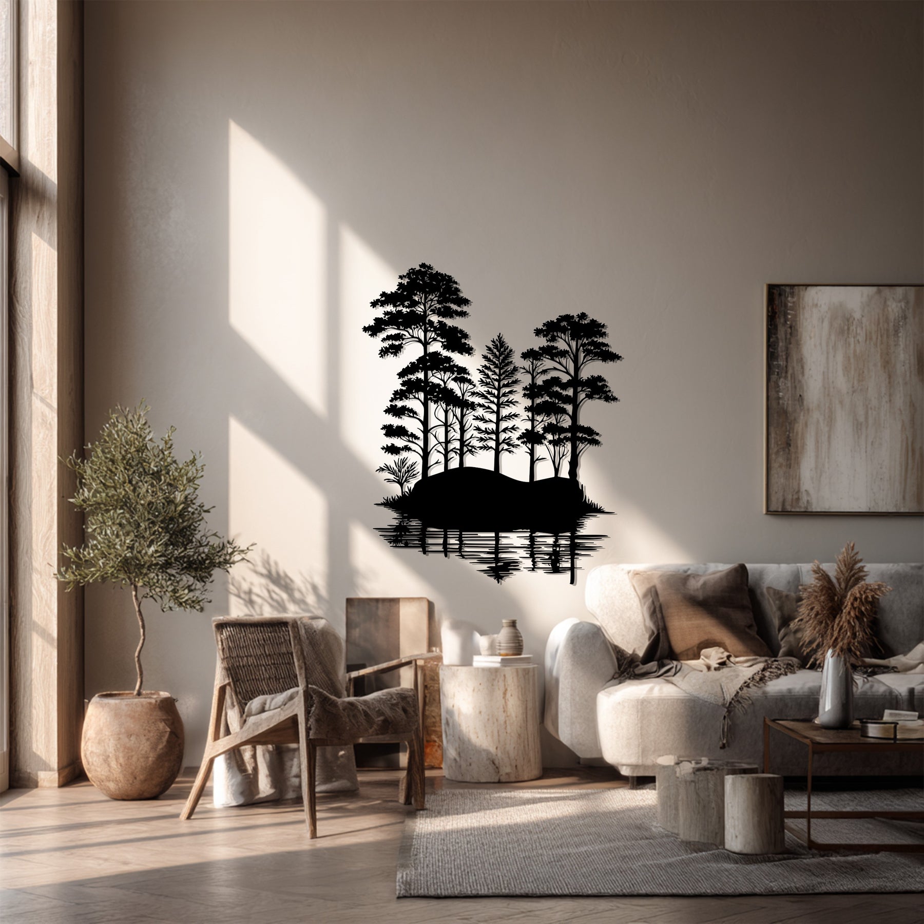 🌲 Nature-Inspired Design – Serene forest and water reflection for peaceful interiors