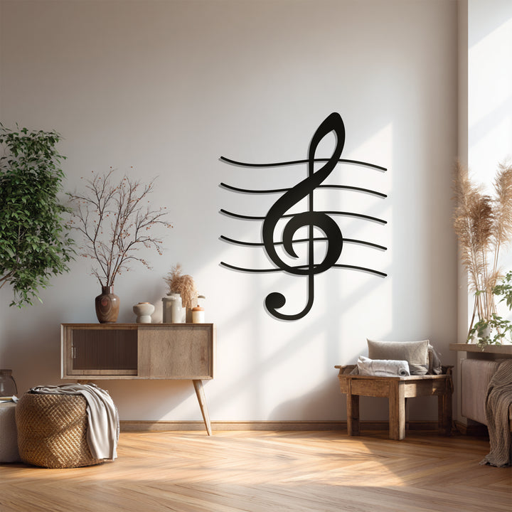 Bring rhythm and harmony into your space with this Treble Clef Metal Wall Art, featuring a bold black treble clef set against musical staff lines. Its modern and artistic design makes it the perfect centerpiece for music lovers and creative minds.