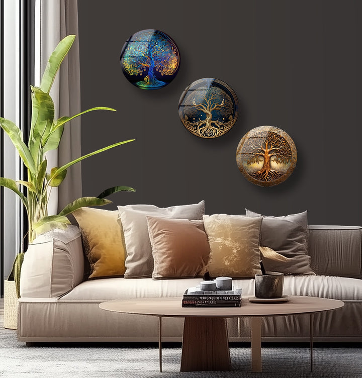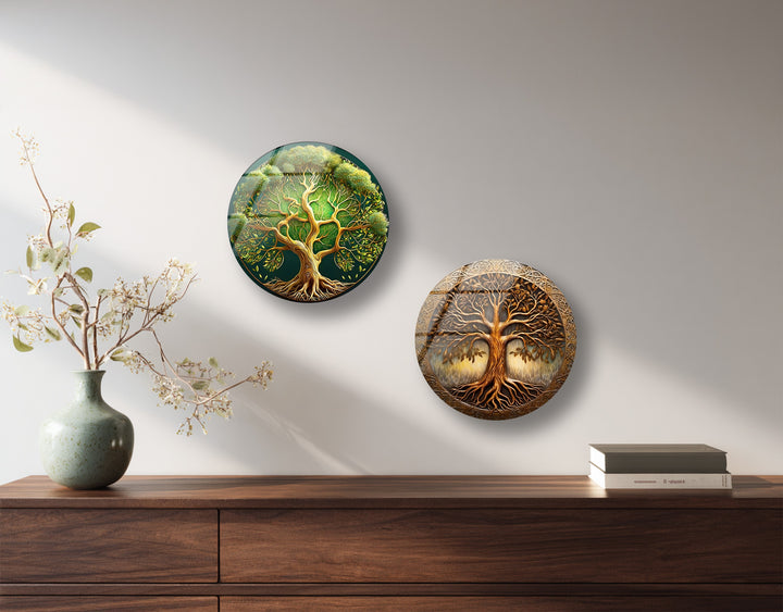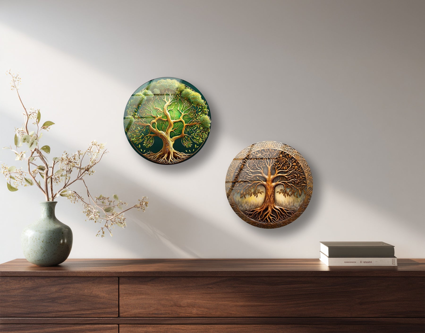 Tree of Life Round Glass Wall Art Set – Spiritual Nature-Inspired Decor