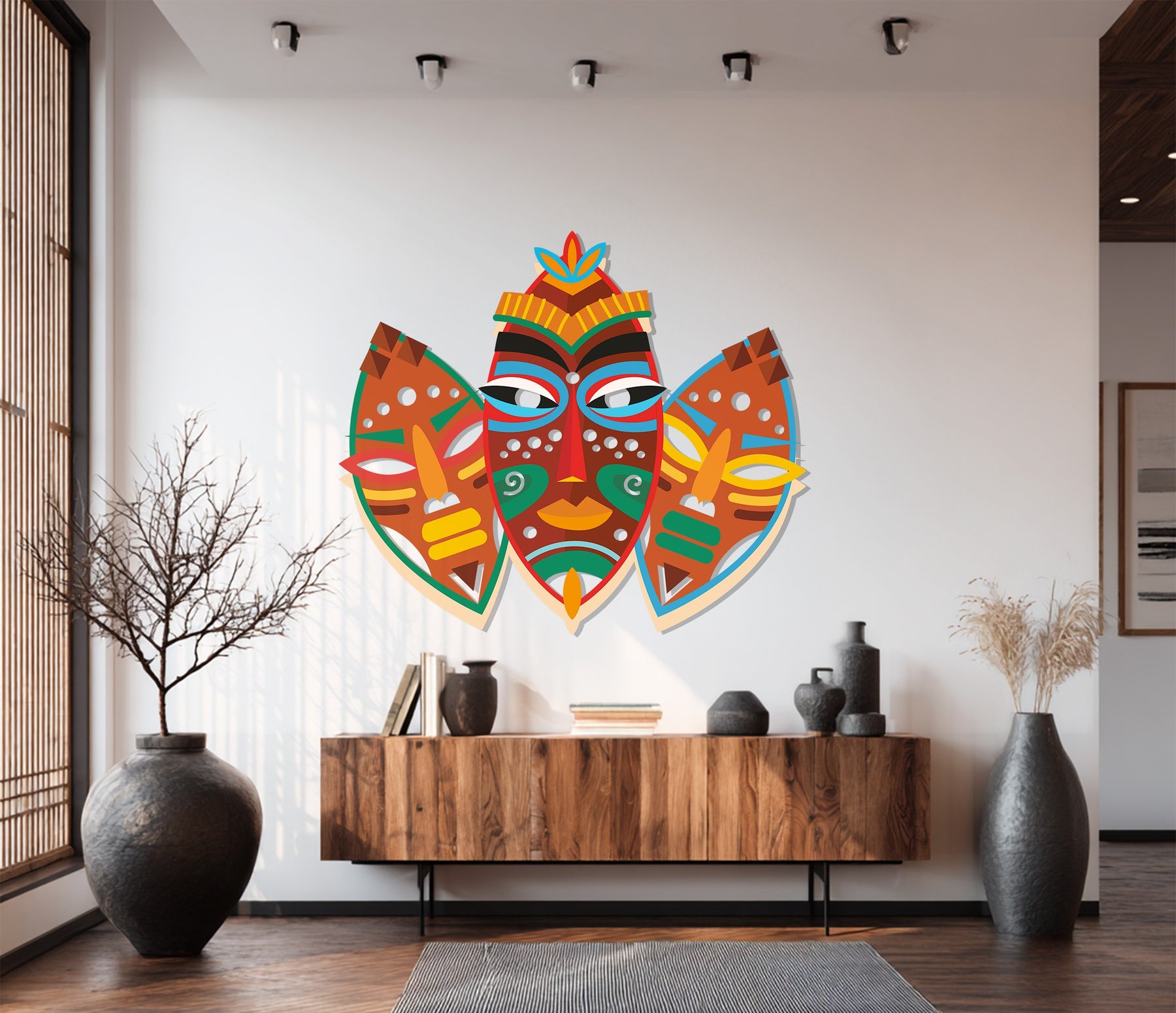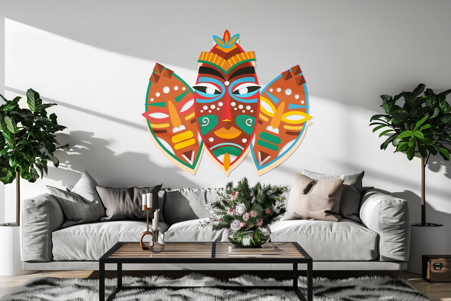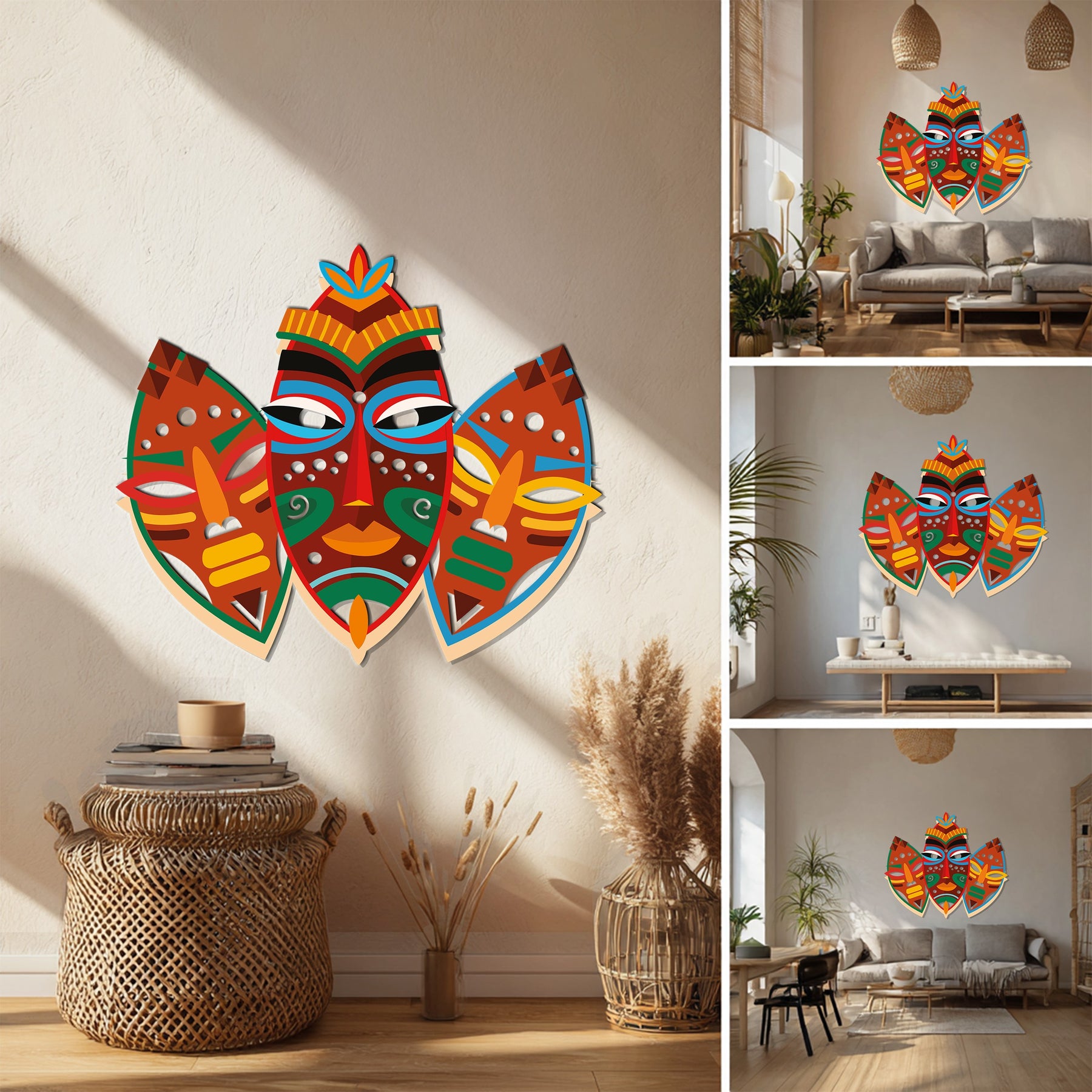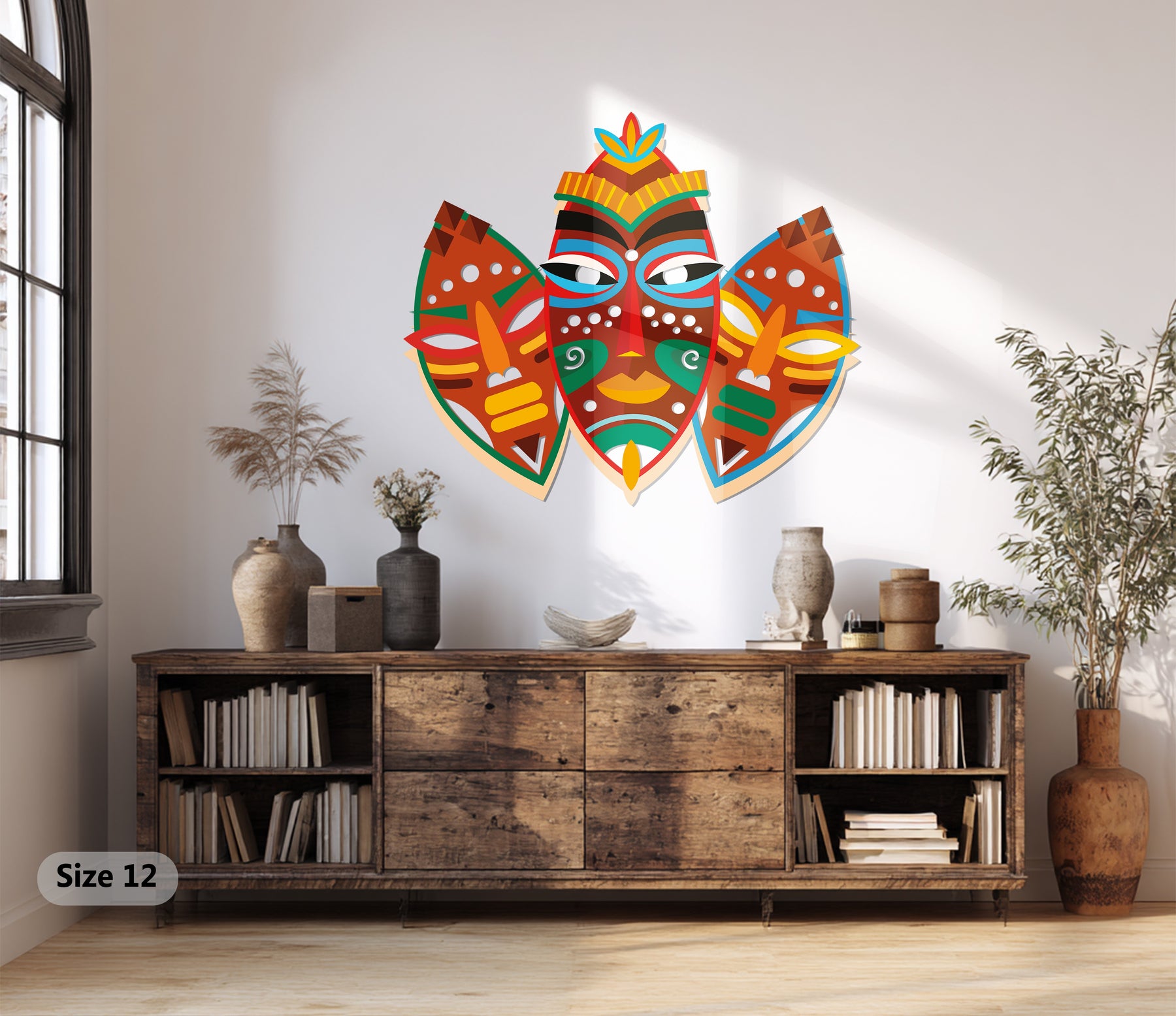 Add cultural depth and vibrant artistry to your interior with the Tribal Mask Metal Wall Art, a stunning expression of African heritage and symbolic design. Featuring bold hues of red, orange, yellow, green, and blue, this artwork celebrates ancestral creativity and the spirit of tradition — perfect for living rooms, hallways, or globally inspired interiors.