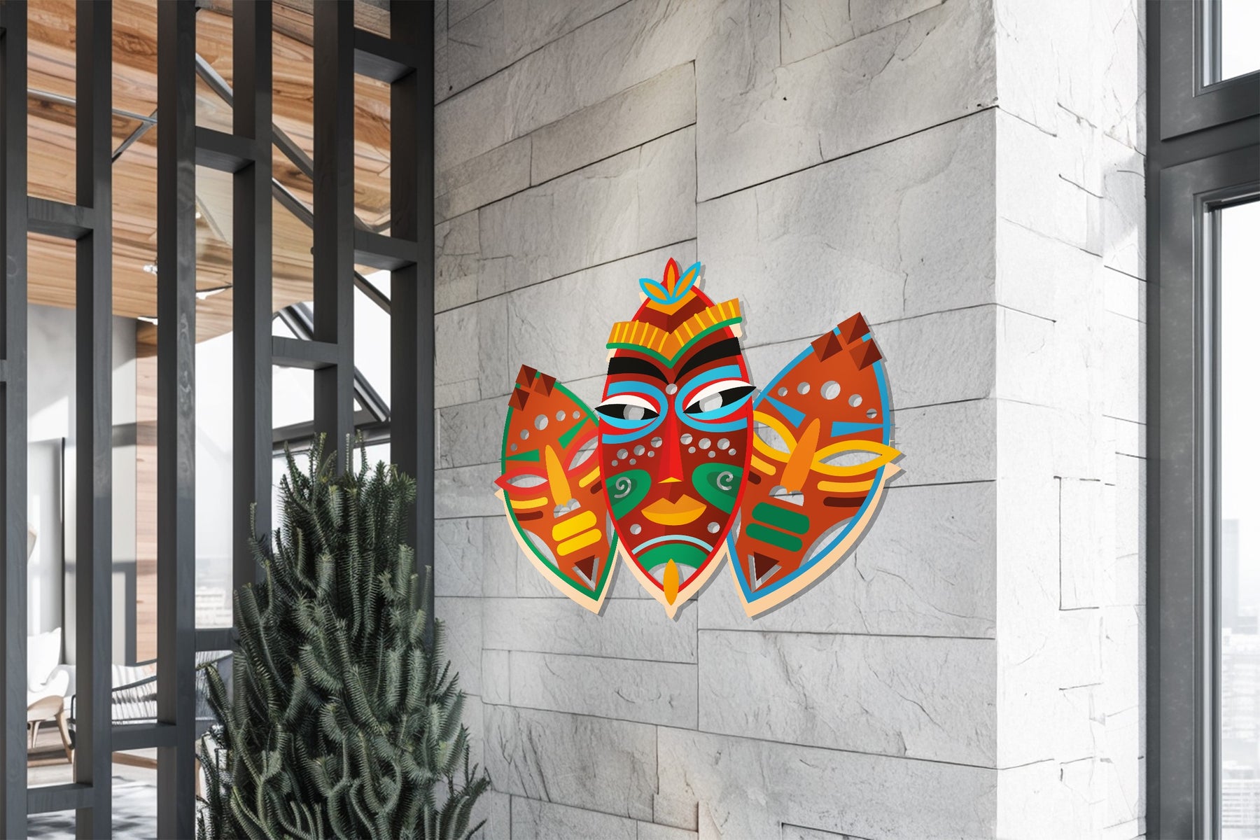 Tribal Mask Metal Wall Art – Colorful African-Inspired Home Decor