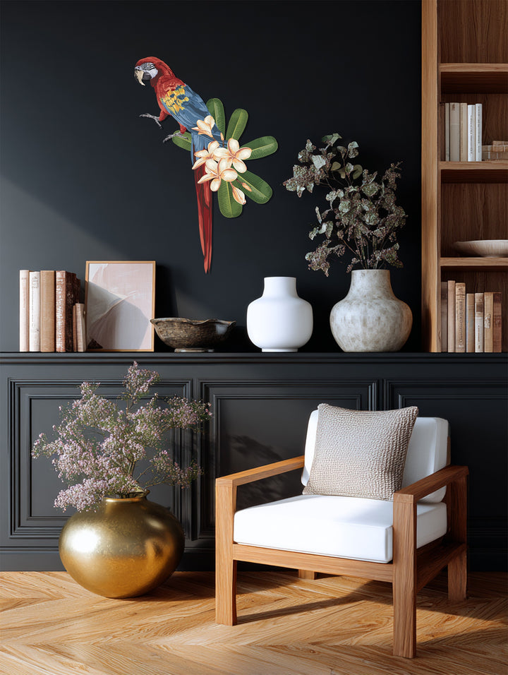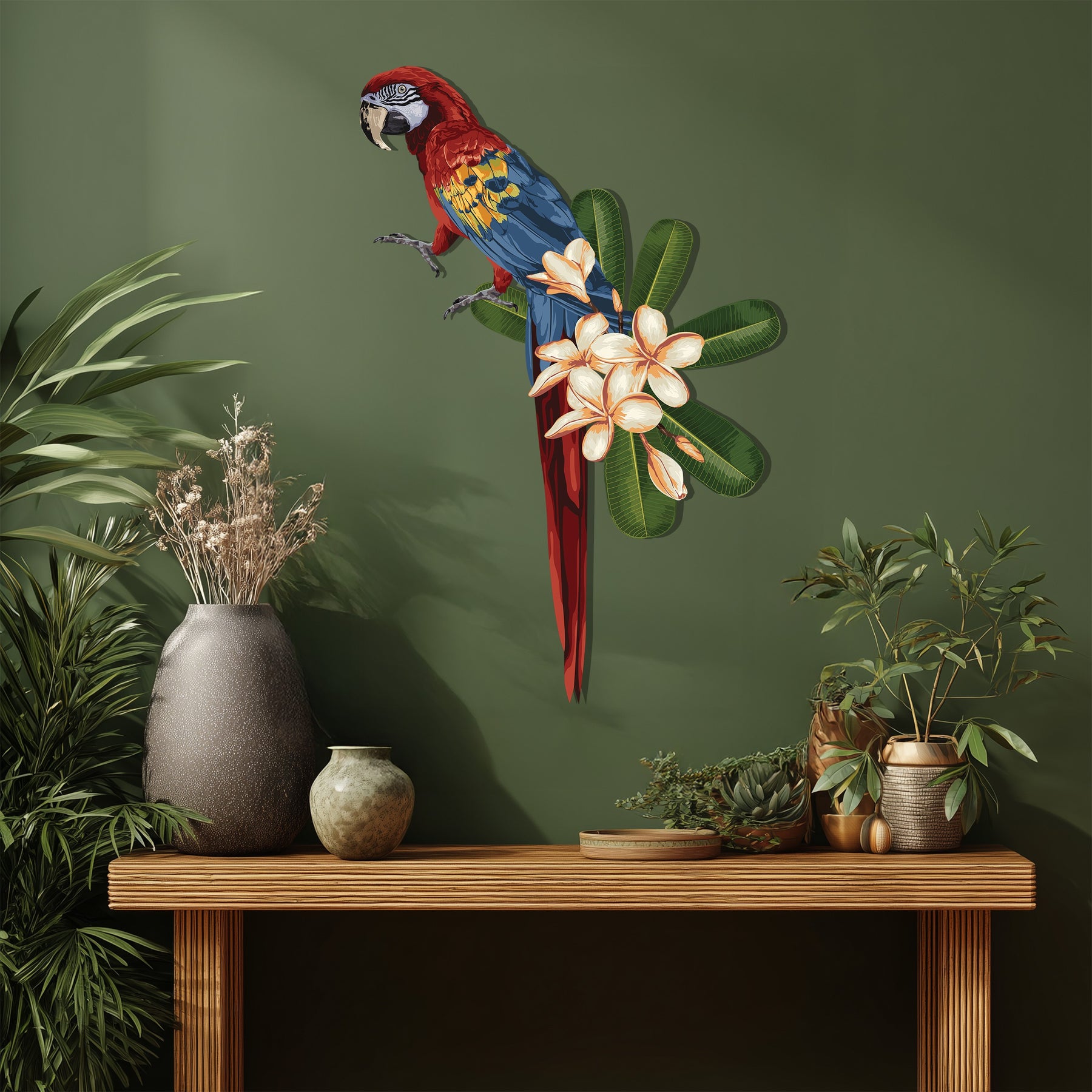 Tropical Parrot Metal Wall Art – Exotic Bird & Flower Design