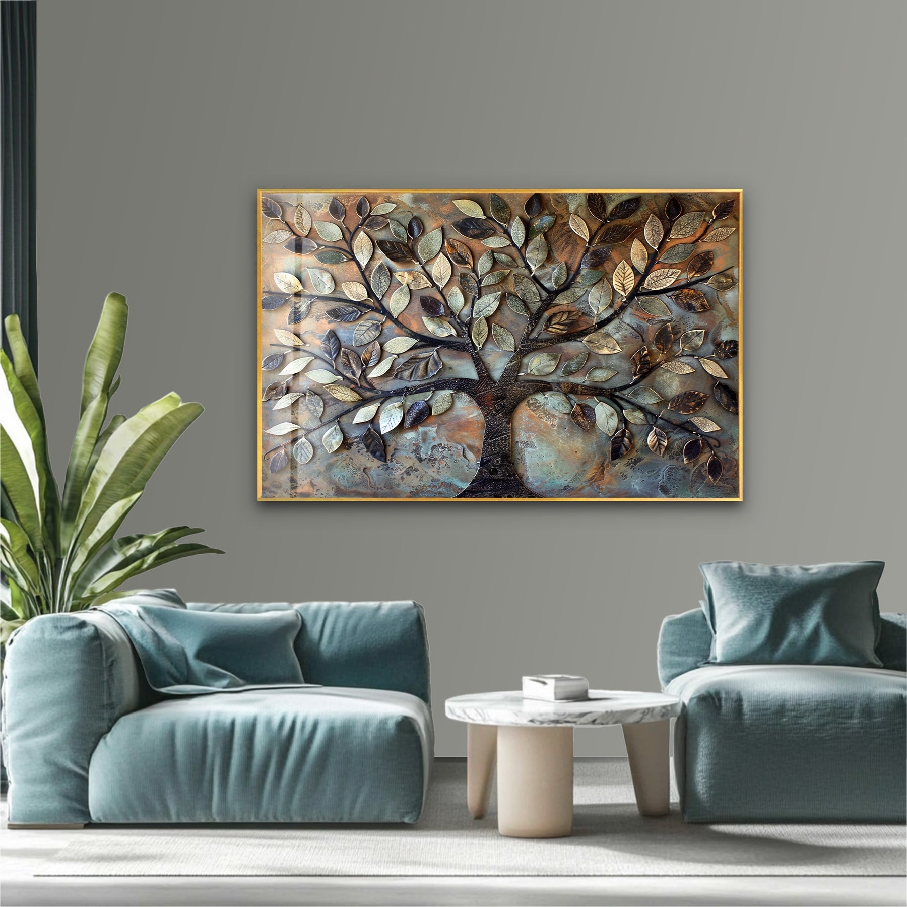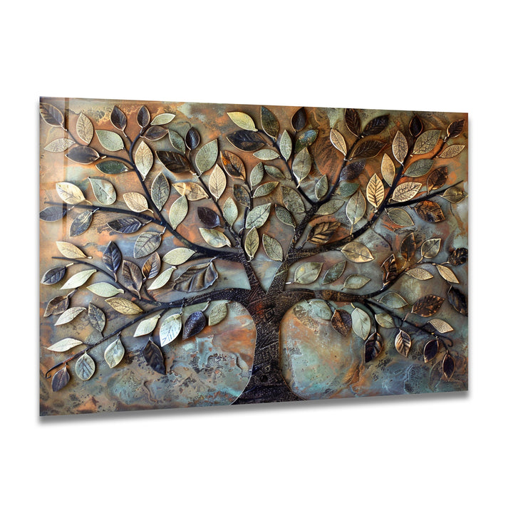Verdant Bronze Tree – Textured Nature-Inspired Glass Wall Art