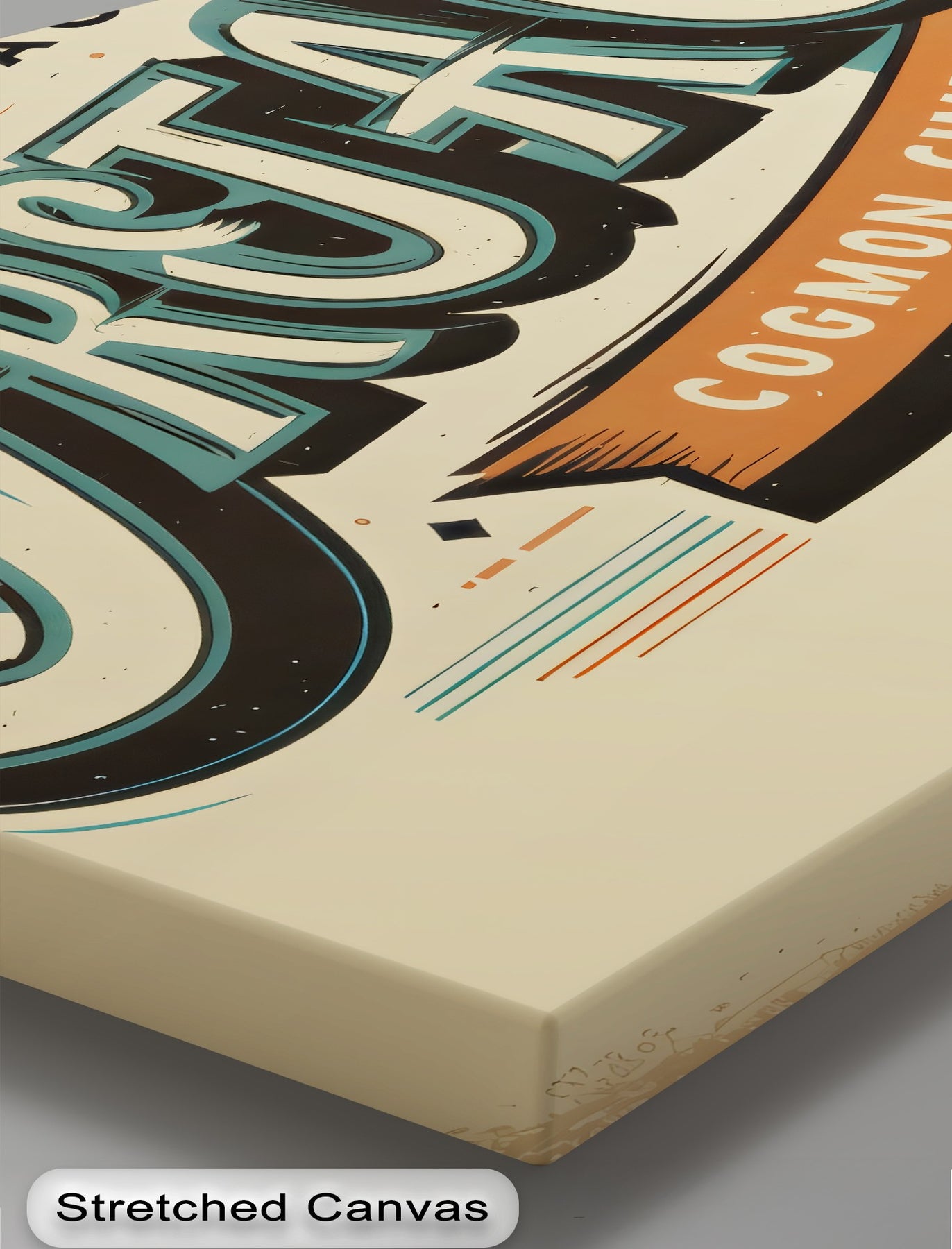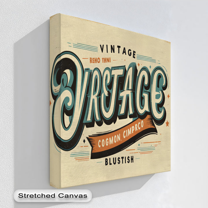 Bring bold nostalgia to your walls with this eye-popping Vintage Lettering Blast canvas print. Featuring a lively, hand-lettered “VINTAGE” motif in teal, black, and cream hues, this design celebrates classic sign painting and mid-century type. Stylized swirls, retro ribbons, and dynamic accents give the piece a charmingly playful energy.