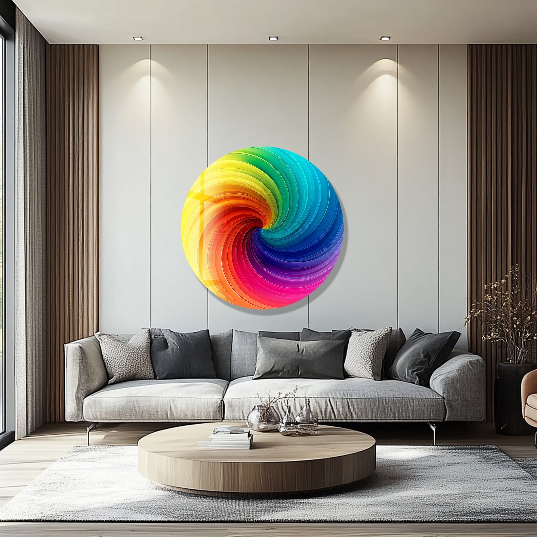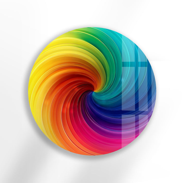 Vortex of Color – Rainbow Swirl Round Glass Wall Art