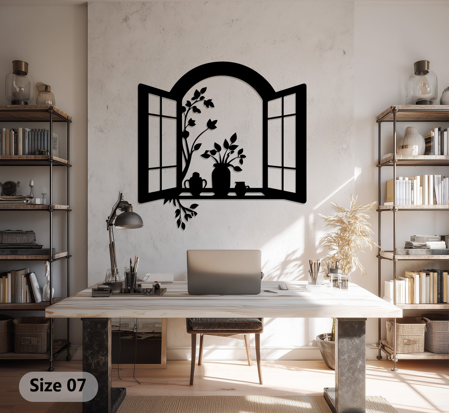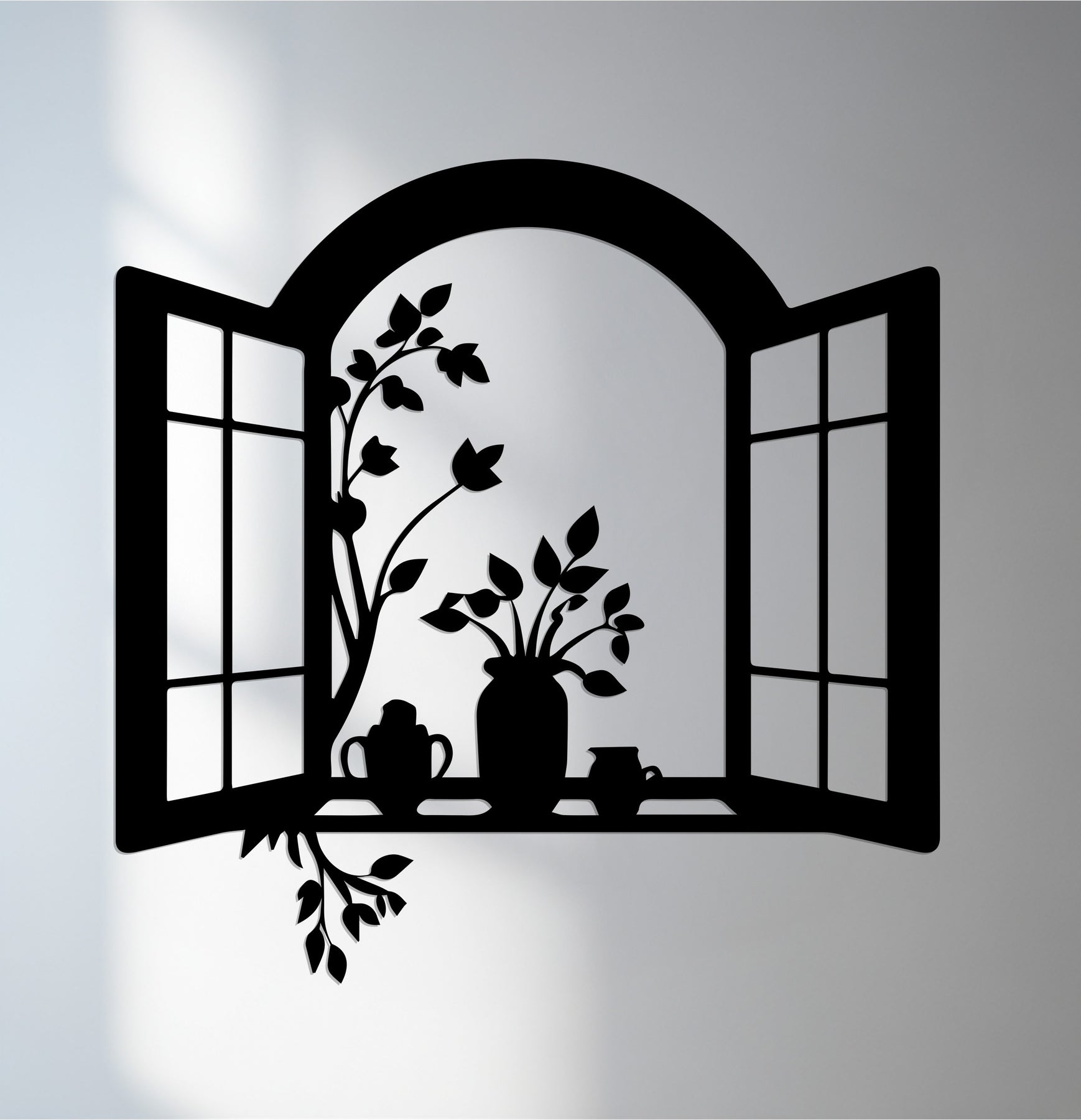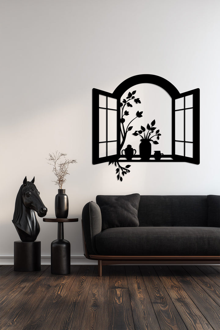 Bring charm and warmth into your living space with this Window Frame Metal Wall Art. Designed as an open window silhouette with delicate flower pots and climbing leaves, this piece creates a welcoming and cozy atmosphere. The graceful floral details add a touch of elegance, making it a perfect addition to kitchens, dining areas, or living rooms.