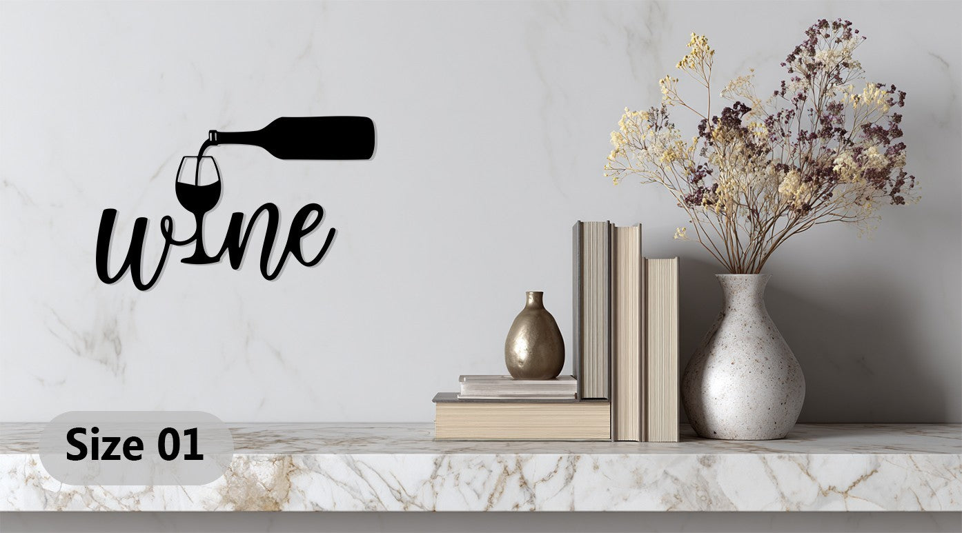 Elevate your kitchen or bar area with the Wine Pour Metal Wall Art, a sleek and contemporary piece that celebrates the beauty of wine culture. Featuring an elegant silhouette of a bottle pouring into a glass, seamlessly integrated into the flowing “wine” script, this artwork captures the essence of relaxation, sophistication, and joy.