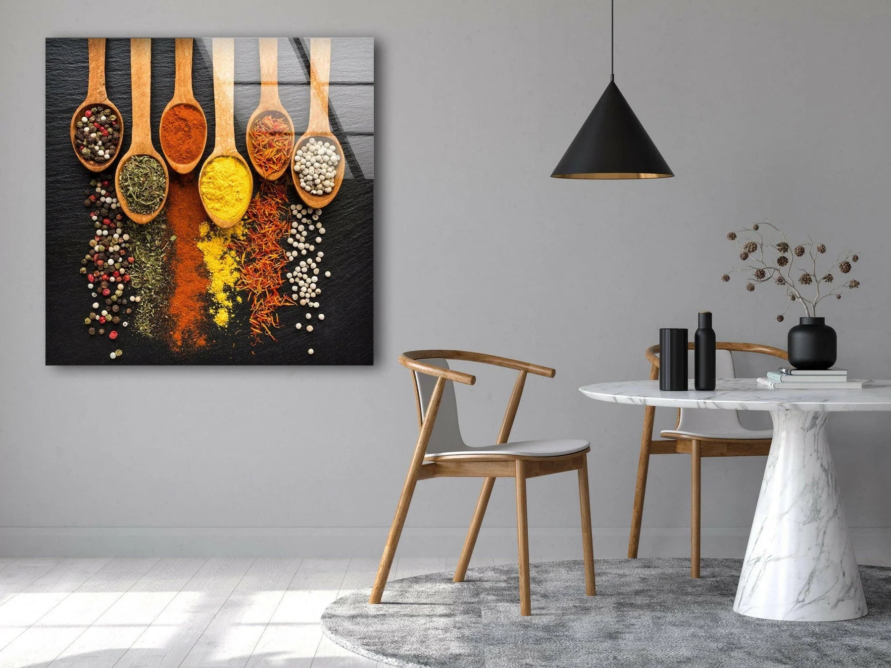 Crafted with 8K High-Quality UV Printing, every detail of the spices and textures is vividly brought to life, delivering a striking and lifelike visual experience. The durable tempered glass (4mm) ensures lasting brilliance, making this artwork a perfect addition for home chefs and food lovers alike.